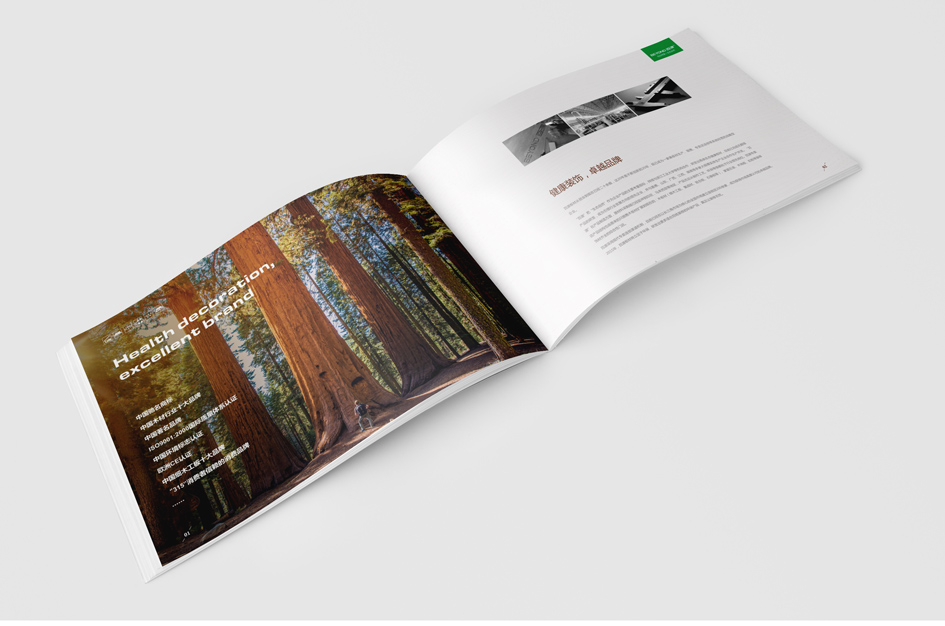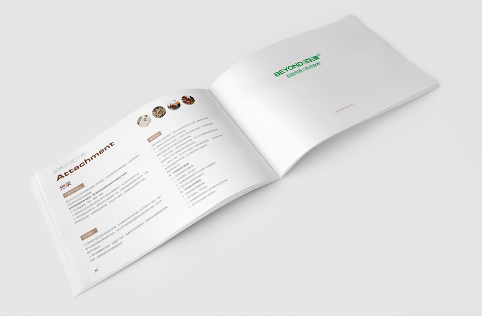 百品同源,生態自然 千里生態自然,于此綿廷不絕;百品同出一源,融匯時尚經典 道法自然,以不拘于形的超然之態,詮釋健康環保的現代家裝理念 畫冊設計清新自然,完美呈現